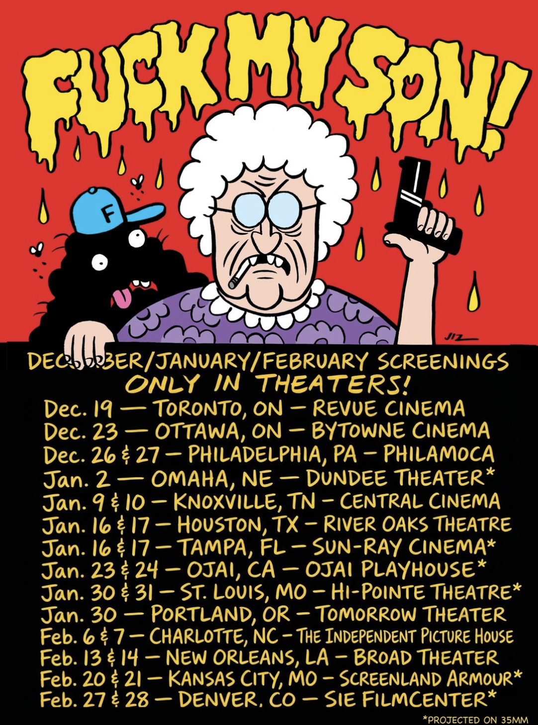 In 2026 Tipper (Color TV) and her new movie F*ck My Son, will be continuing its tour across the country. If you haven’t had the chance to see it yet, there are a few more opportunities to catch this controversial new release. Based on the comic of the same name by Cartoonist Johnny Ryan, the film is rumored to never be available on streaming platforms. So see it while you still have the chance. Rated X, it is intended for