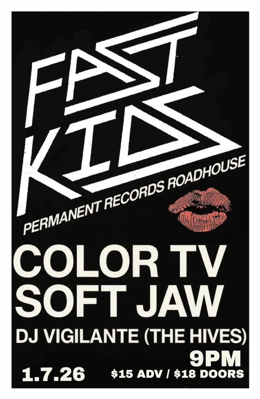 Mike Brandon of the Mystery Lights (NY) brings new act FAST KIDS to Los Angeles to perform with the poptastic COLOR TV and long beach all stars SoftJaw. DJ Vigilante of The Hives will be spinning all night. Dont Miss!! This one is for the books.
